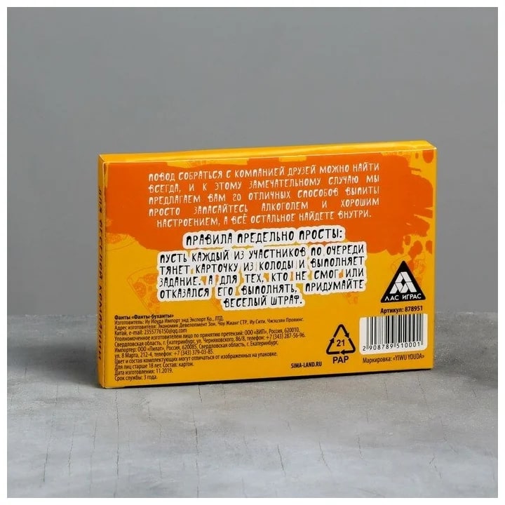 Купить игра для компании "фанты буханты" 20 карт от 100 руб. с доставкой до пункта выдачи в Семикаракорске. Интернет магазин ДекаМаркет. Оплата при получении.