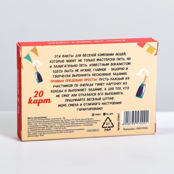 Купить игра для компании "фанты звезда бокала" 20 карт от 120 руб. с доставкой до пункта выдачи в Семикаракорске. Интернет магазин ДекаМаркет. Оплата при получении.